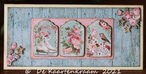 De roosjes in de hoeken heb ik ook uit het Stameria papier geknipt.